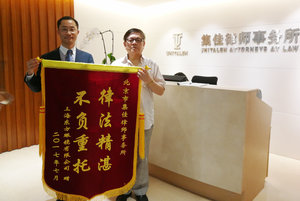 “律法精湛,不負(fù)重托”——滬上中華老字號(hào)“東方眼鏡”法定代表人李定法先生親臨集佳贈(zèng)送錦旗