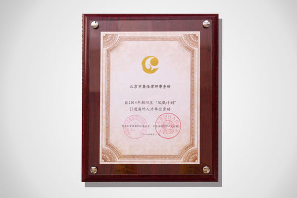 近日,在2014年朝陽區(qū)“鳳凰計劃”認(rèn)定儀式上,北京市集佳律師事務(wù)所榮獲2014年朝陽區(qū)“鳳凰計劃”引進(jìn)海外人才單位資助。這意味著,集佳在積極吸引海外優(yōu)秀人才方面的工作,得到了朝陽區(qū)委和區(qū)政府的認(rèn)可和鼓勵。