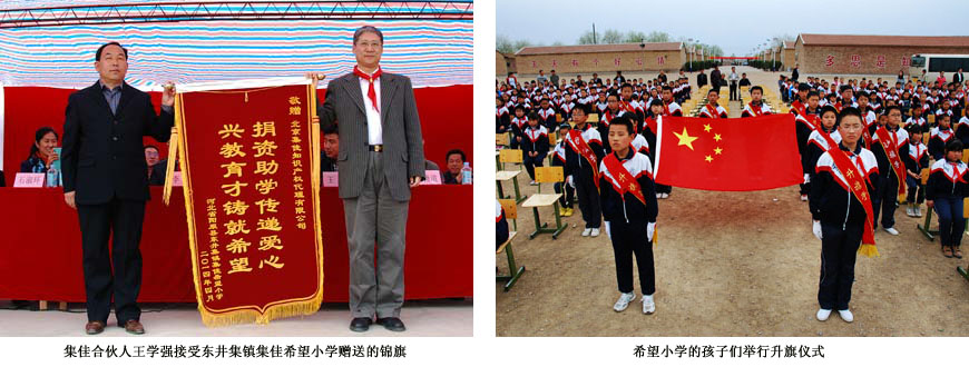 自2004年以來,集佳支持“希望工程”,已捐建十所“希望小學(xué)”。集佳也被中國青基會列為重要捐贈伙伴。改善我國農(nóng)村基礎(chǔ)教育設(shè)施,完善農(nóng)村青少年學(xué)習(xí)環(huán)境,這是我們的期望,希望通過集佳的綿薄之力,為更多的孩子創(chuàng)造良好的學(xué)習(xí)環(huán)境。
