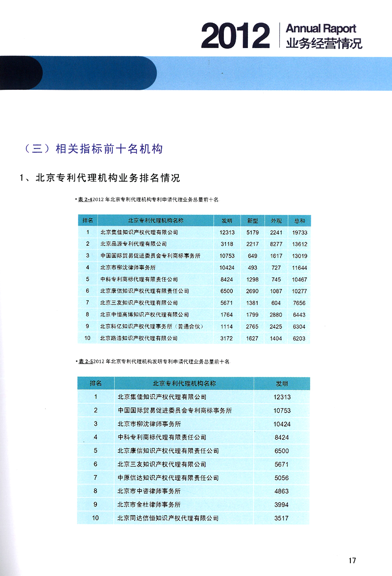 2012北京專利代理年報(bào)發(fā)布 集佳專利申請(qǐng)總量及發(fā)明申請(qǐng)量均列第一