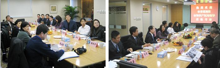 考察團(tuán)領(lǐng)導(dǎo)認(rèn)真聽(tīng)取報(bào)告 考察團(tuán)領(lǐng)導(dǎo)與集佳領(lǐng)導(dǎo)展開(kāi)會(huì)談