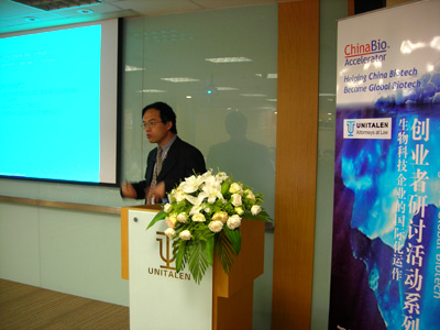 經(jīng)過(guò)十多年的發(fā)展,集佳已經(jīng)和國(guó)內(nèi)多家生物科技企業(yè)建立知識(shí)產(chǎn)權(quán)方面的合作,正因?yàn)槿绱?,ChinaBio Accelerator選擇了把集佳作為首次活動(dòng)的舉辦地點(diǎn),同時(shí)邀請(qǐng)了在生物技術(shù)領(lǐng)域有著豐富經(jīng)驗(yàn)的知識(shí)產(chǎn)權(quán)專家集佳合伙人劉超博士出席并做演講。出席本次活動(dòng)的嘉賓還有ChinaBio總裁和創(chuàng)建人Greg B. Scott 先生、保諾科技(北京)有限公司CEO Nigel R.A. Beeley博士。他們分別就中國(guó)企業(yè)如何吸引投資者、如何通過(guò)外包降低藥物研發(fā)成本的主題進(jìn)行了精彩的演講。
