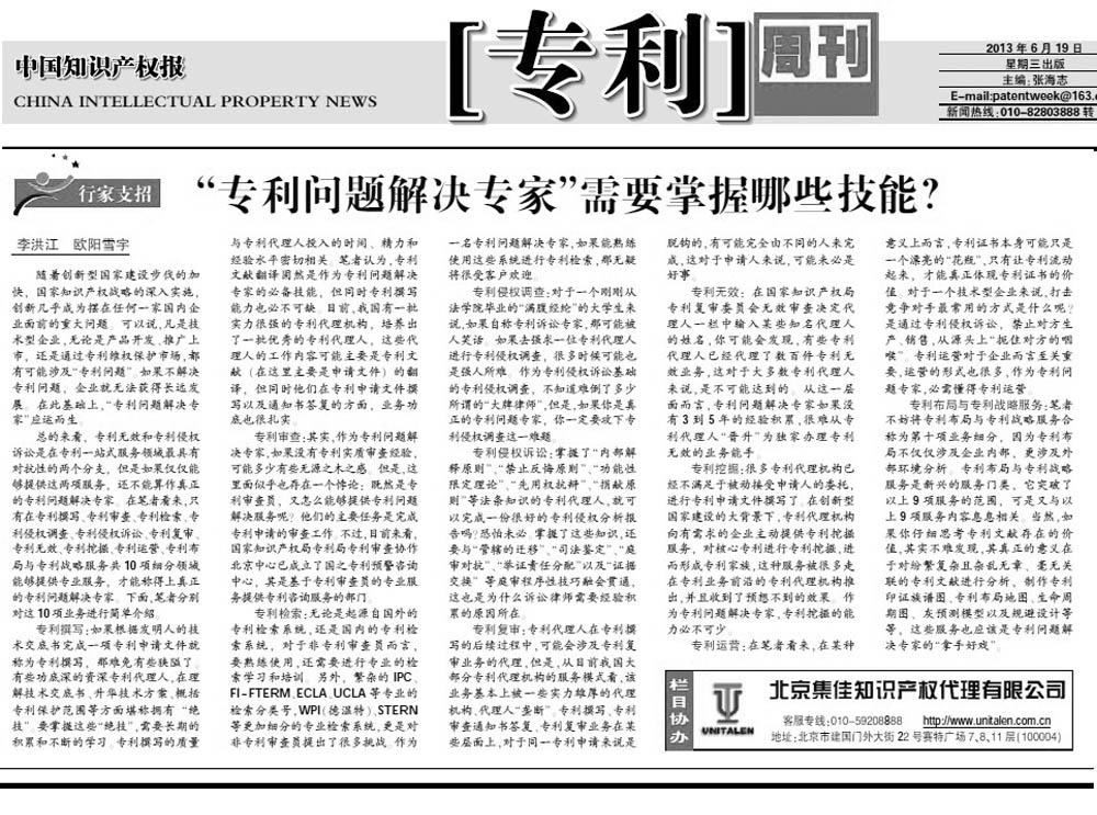 《中國知識產(chǎn)權(quán)報》:“專利問題解決專家”需要掌握哪些技能?