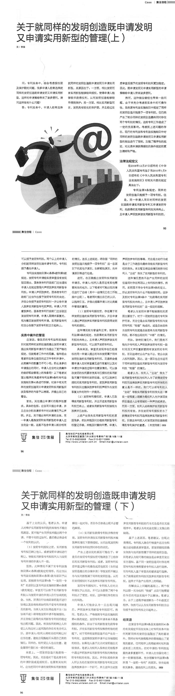 《電子知識產(chǎn)權(quán)》:關(guān)于就同樣的發(fā)明創(chuàng)造既申請發(fā)明又申請實(shí)用新型的管理