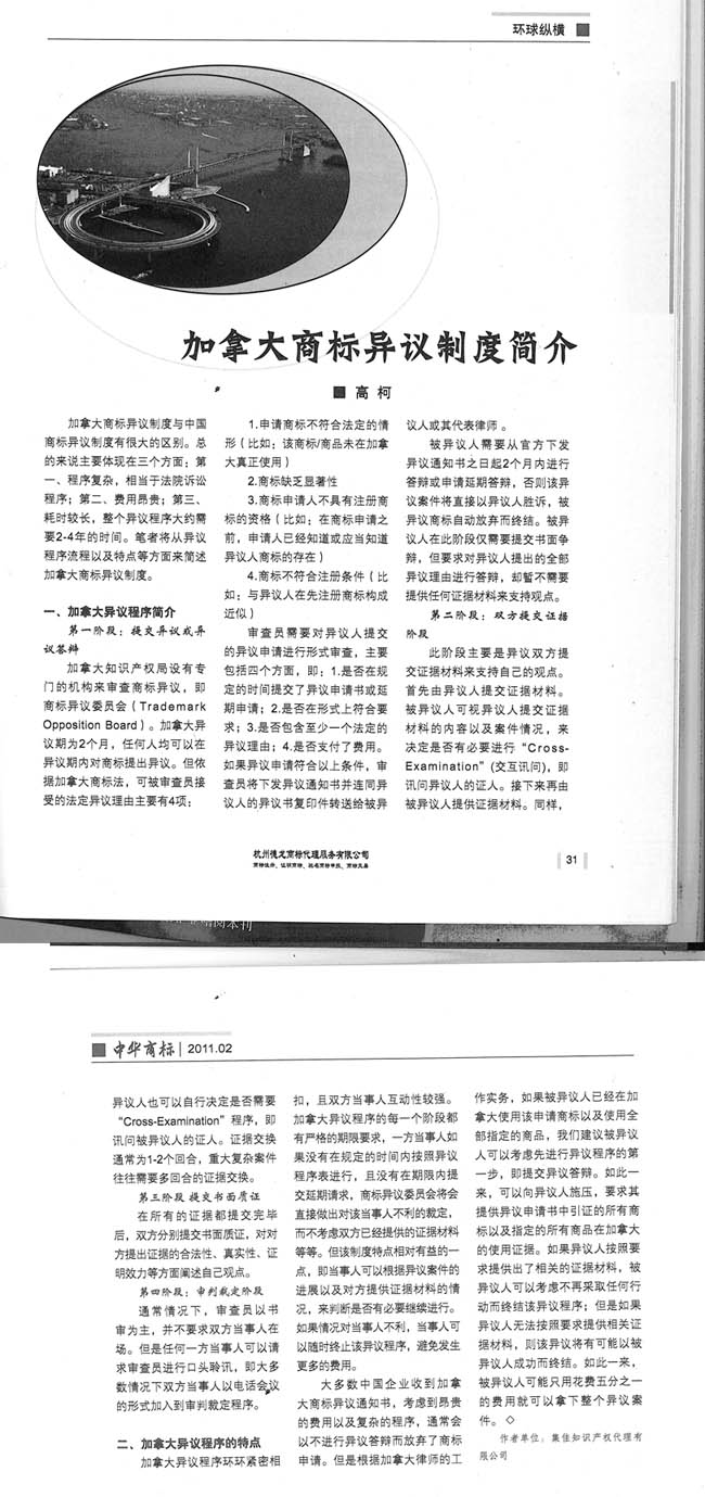《中華商標(biāo)》:加拿大商標(biāo)異議制度簡(jiǎn)介