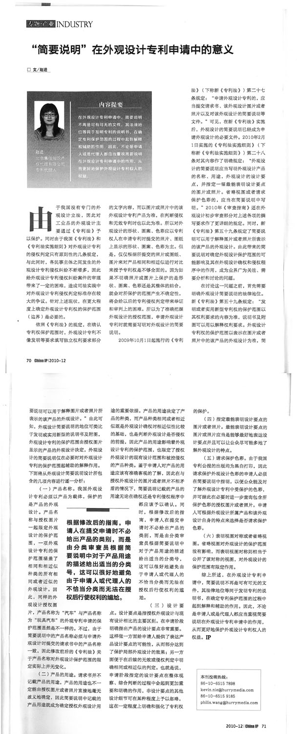 《China IP》:“簡要說明”在外觀設(shè)計專利申請中的意義