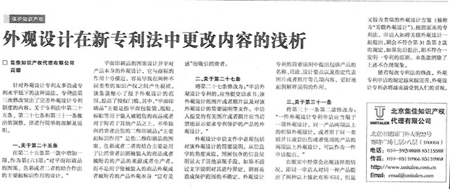 《國際商報》:外觀設(shè)計在新專利法中更改內(nèi)容的淺析