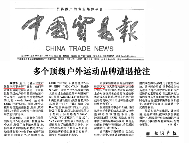 《中國貿(mào)易報》:多個頂級戶外運動品牌遭遇搶注
