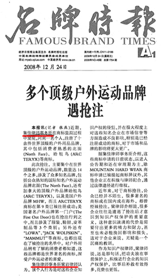 《名牌時報》:多個頂級戶外運動品牌遇搶注