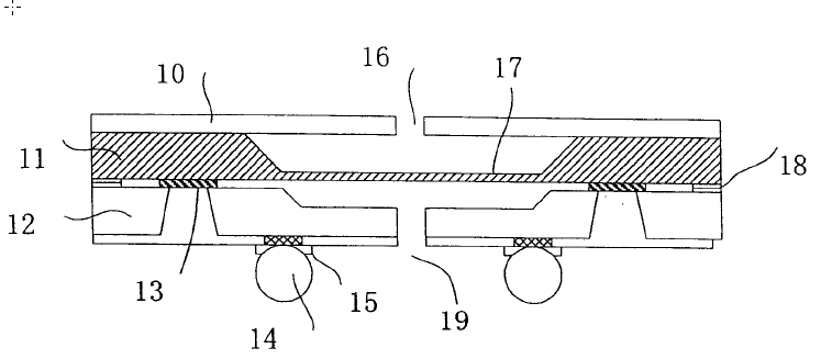 對(duì)于區(qū)別(4),對(duì)比文件1圖1(參見以下附圖II)已經(jīng)公開了:差壓的第一壓力通過底座圓片12中心的壓力入口19,作用在應(yīng)變薄膜17上,差壓的第二壓力通過位于玻璃帽子圓片11中心的入口16作用在應(yīng)變薄膜17,壓力傳感器輸出為這兩個(gè)壓力之差。即對(duì)比文件1已經(jīng)公開了:由入口19進(jìn)入的腔體可作為由入口16進(jìn)入的腔體的參考?jí)毫η弧?/p>