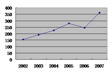 我國于2001年3月28日,國務(wù)院第36次常務(wù)會議通過《集成電路布圖設(shè)計(jì)保護(hù)條例》,該條例從2001年10月1日起實(shí)施,至今,施行《集成電路布圖設(shè)計(jì)保護(hù)條例》已有六年多時(shí)間了。集成電路布圖設(shè)計(jì)的申請量逐年上升,圖1給出集成電路布圖設(shè)計(jì)從2001年以來的登記量的變化。截至到2008年1月16日,國家知識產(chǎn)權(quán)局已公告集成電路布圖設(shè)計(jì)專有權(quán)1505項(xiàng),在上述登記中,國內(nèi)企業(yè)(忽略個(gè)人登記)的登記占80%左右,國外企業(yè)(忽略個(gè)人登記)占20%左右,這說明,集成電路布圖設(shè)計(jì)以國內(nèi)企業(yè)登記為主,國外企業(yè)登記較少。