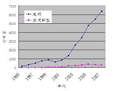 圖2 從1995年以來中國企業(yè)在中國申請的專利的公開量的變化