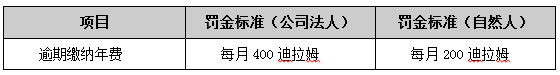 有關(guān)于年費繳納罰金標準,見下表: