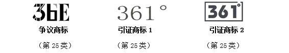 商評委裁定:引證商標(biāo)“361°”具有較強(qiáng)獨(dú)創(chuàng)性,且據(jù)申請人提交我委的證據(jù)可知, “361°”商標(biāo)在爭議商標(biāo)注冊申請日前在服裝、運(yùn)動鞋商品上已具有較高的知名度,爭議商標(biāo)“36E”與“361°”的文字構(gòu)成、呼叫相近,含義無明顯區(qū)別,構(gòu)成近似商標(biāo)。同時,爭議商標(biāo)指定使用的服裝等商品與引證商標(biāo)核定使用的商品在功能用途、銷售渠道、消費(fèi)對象等方面相同或相近,屬于同一種或類似商品。爭議商標(biāo)與引證商標(biāo)共存易導(dǎo)致公眾對商品的來源產(chǎn)生混淆、誤認(rèn),從而裁定爭議商標(biāo)予以無效宣告。