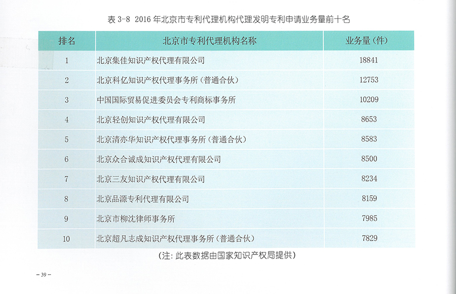 自《北京市專利代理年報》發(fā)布以來,集佳每年都在不同業(yè)務領域和不同指標排名中保持優(yōu)勢,尤其在發(fā)明專利申請量、有效專利申請量、專利申請業(yè)務總量等公認值得參考的評價項目上。而這些指標通常是代理機構專業(yè)水平、代理質量、市場開拓、服務質量等綜合能力的反映。