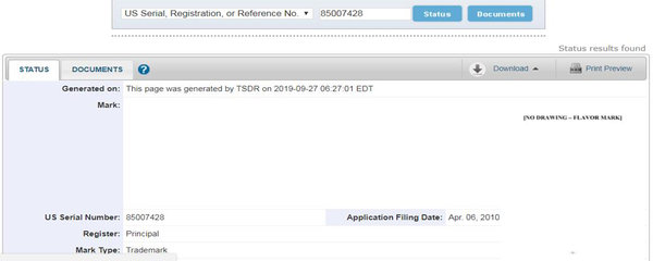 美國的氣味/味道商標(biāo)申請注冊較少,從我們能找到的商標(biāo)注冊來看,其在申請過程中主要以文字的方式來對擬申請的氣味/味道進行描述。如:The mark consists of the distinctive flavor of peppermint in connection with nitroglycerin. 該商標(biāo)包括薄荷和硝酸甘油的獨特風(fēng)味。