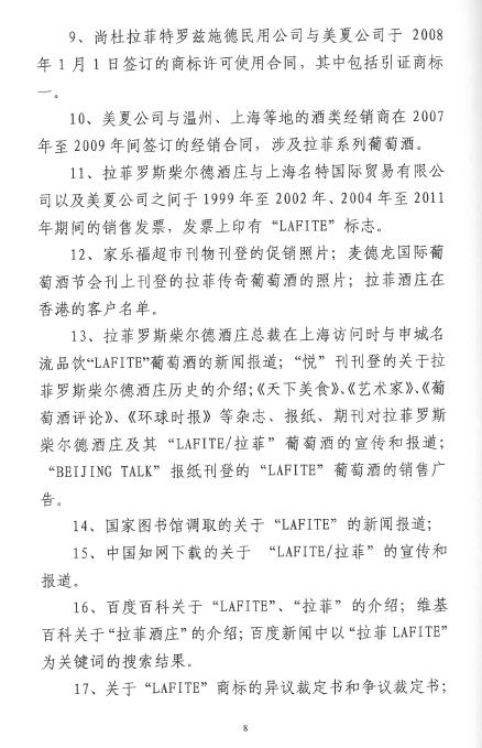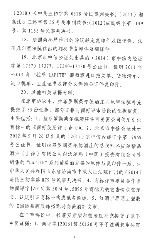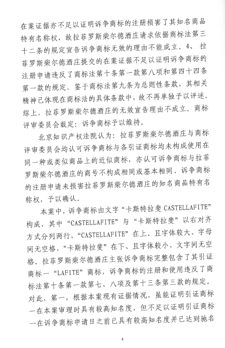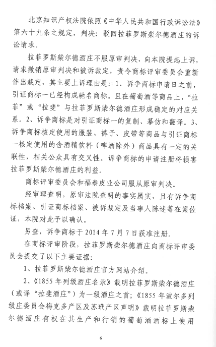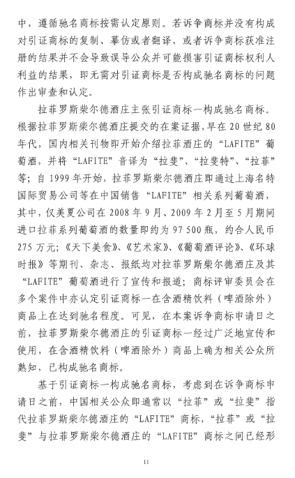 自2016年以來,商評委、北京知識產(chǎn)權(quán)法院已經(jīng)先后在十幾個裁定或行政判決中認(rèn)定“LAFITE”為馳名商標(biāo),但大多還在行政訴訟程序之中。本案是首個終審判決,對“LAFITE”在中國的馳名商標(biāo)保護(hù)之路,具有里程碑式的重要意義。