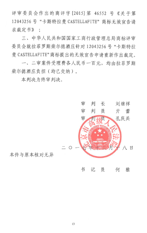 另附北京高院就本案做出的(2017)京行終3981號二審判決書: