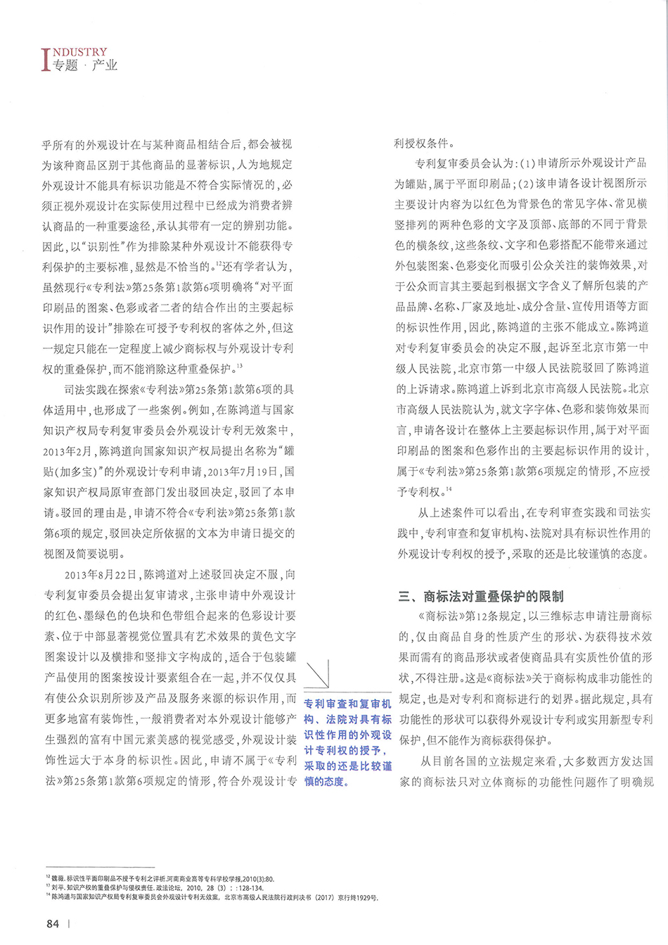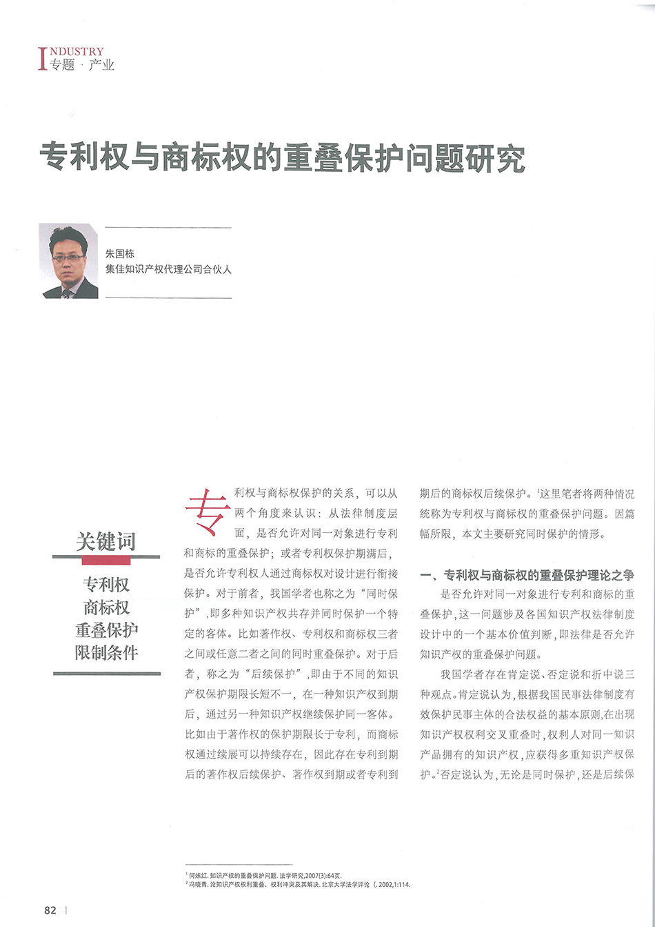 集佳文章《專利權(quán)與商標(biāo)權(quán)的重疊保護(hù)問題研究》在《中國知識產(chǎn)權(quán)》發(fā)表