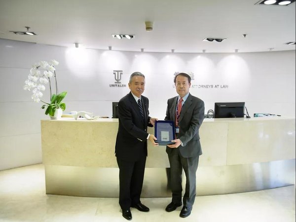 5月21日下午,三菱電機(jī)株式會(huì)社知識(shí)產(chǎn)權(quán)中心中心長諏訪裕治先生、三菱電機(jī)株式會(huì)社知識(shí)產(chǎn)權(quán)中心手島悠太先生、三菱電機(jī)(中國)有限公司知識(shí)產(chǎn)權(quán)室室長伊達(dá)研郎先生、三菱電機(jī)(中國)有限公司知識(shí)產(chǎn)權(quán)室馮文先生一行四人專程來訪,感謝集佳和北京集慧智佳知識(shí)產(chǎn)權(quán)管理咨詢股份有限公司在過去的一年中對(duì)于三菱電機(jī)株式會(huì)社在中國的知識(shí)產(chǎn)權(quán)活動(dòng)做出了杰出貢獻(xiàn),并向集佳和集慧智佳進(jìn)行表彰,頒發(fā)了表彰盾。據(jù)悉,集佳和集慧智佳是2018年度獲三菱電機(jī)株式會(huì)社表彰的唯二中國知識(shí)產(chǎn)權(quán)服務(wù)機(jī)構(gòu)。