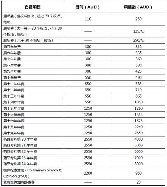 2020年10月1日起,澳大利亞知識產(chǎn)權(quán)局將上調(diào)專利、工業(yè)外觀設(shè)計(jì)及商標(biāo)的官費(fèi)(僅有少部分費(fèi)用有所下調(diào))。這次費(fèi)用調(diào)整涉及了電子支付方式(“首選方式”)和通過“其他方式”支付兩種支付方式,在此主要列舉采用電子方式支付官費(fèi)涉及的費(fèi)用調(diào)整項(xiàng)目。