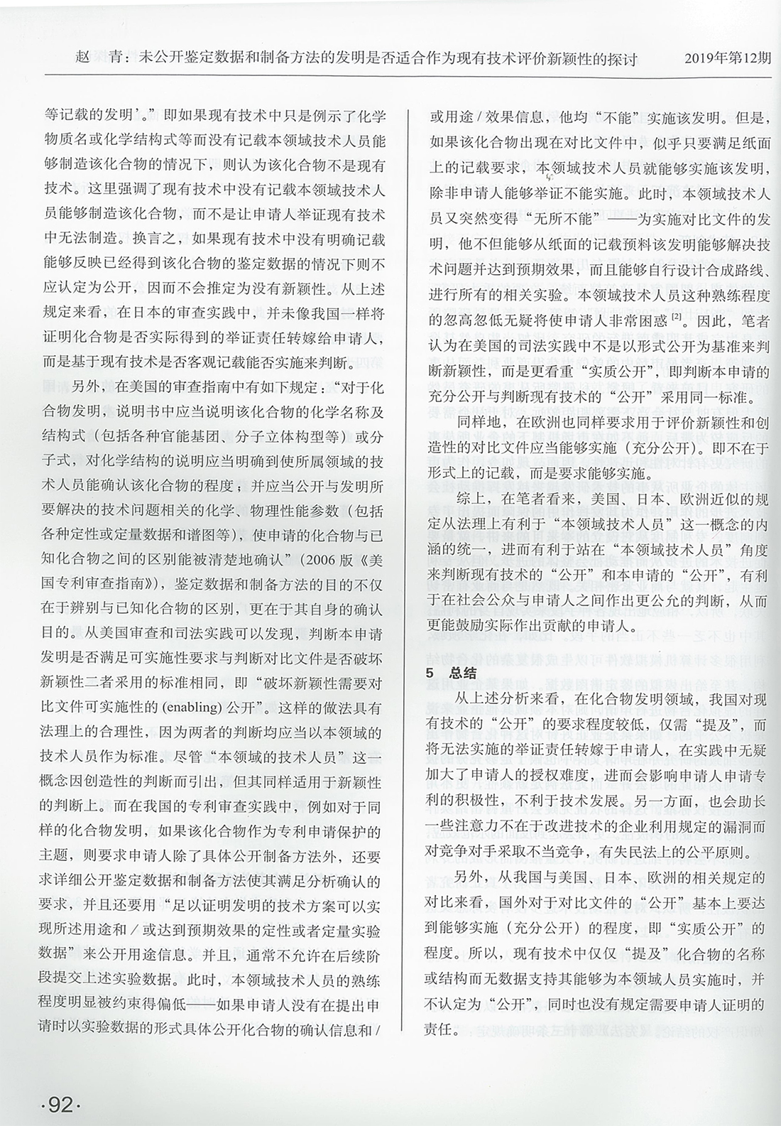 集佳文章《未公開鑒定數(shù)據(jù)和制備方法的發(fā)明是否適合作為現(xiàn)有技術(shù)評價新穎性的探討》在《中國發(fā)明與專利》 發(fā)表