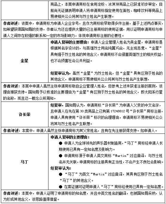 綜上分析,縱然從商標(biāo)申請人的角度出發(fā),其申請商標(biāo)具有一定的合理來源,其商標(biāo)使用難以使消費者聯(lián)想到烈士名稱,但從以上案例可以看出,在商標(biāo)申請的審查階段,國知局對烈士名稱采取強保護的態(tài)度,申請人在遭遇商標(biāo)與烈士名稱沖突的情況下,需謹慎對待,從商標(biāo)來源、已取得注冊商標(biāo)的情況、企業(yè)發(fā)展及商標(biāo)使用現(xiàn)狀等多角度舉證,以期獲得商標(biāo)注冊。