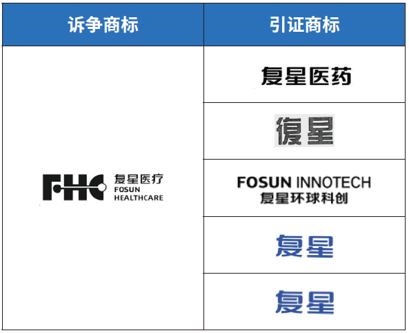 ”雖然和各引證商標均包含“復星”,但訴爭商標中包含多種構成要素,中文部分整體為“復星醫(yī)療”,再加上其英文部分“FOSUN HEALTHCARE+FHG”,從而在商標的整體外觀、呼叫以及含義上均和各引證商標產生了一定的差異,降低了混淆的可能性。
