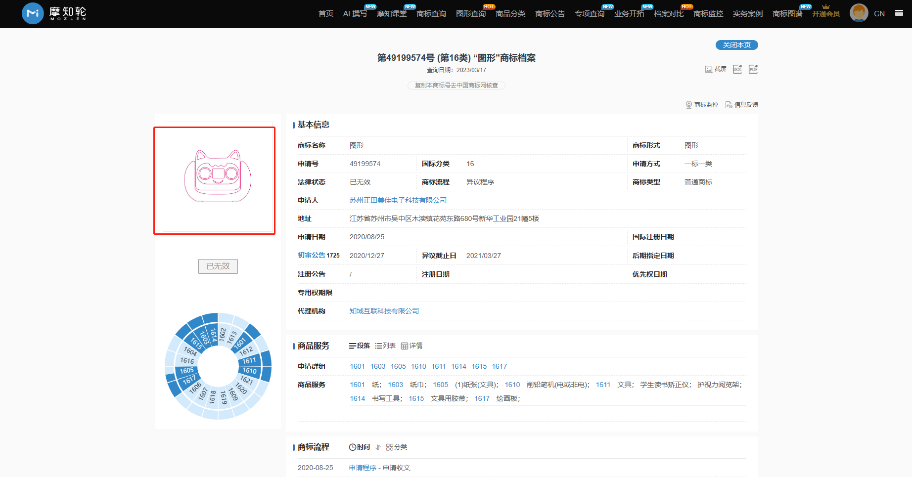 商標(biāo)局認(rèn)為:被異議商標(biāo)指定使用在第16類“紙;削鉛筆機(jī)(電或非電)”等商品上。異議人稱被異議人申請(qǐng)注冊被異議商標(biāo)侵犯其外觀設(shè)計(jì)專利權(quán),異議人提供的國家知識(shí)產(chǎn)權(quán)局出具的專利設(shè)計(jì)專利權(quán)評(píng)價(jià)報(bào)告顯示,異議人“機(jī)器人(喵喵)”專利號(hào)ZL202030085792.3,申請(qǐng)日為2020年3月14日,授權(quán)公告日為2020年7月14日,上述日期均早于被異議商標(biāo)申請(qǐng)日。被異議商標(biāo)“圖形”與異議人“機(jī)器人(喵喵)”外觀設(shè)計(jì)專利中顯示的主視圖主要構(gòu)圖要素,圖形整體視覺效果相近,已構(gòu)成近似,綜上所述,被異議人申請(qǐng)注冊被異議商標(biāo)侵犯其外觀設(shè)計(jì)專利權(quán),被異議商標(biāo)的申請(qǐng)注冊應(yīng)不予核準(zhǔn)。