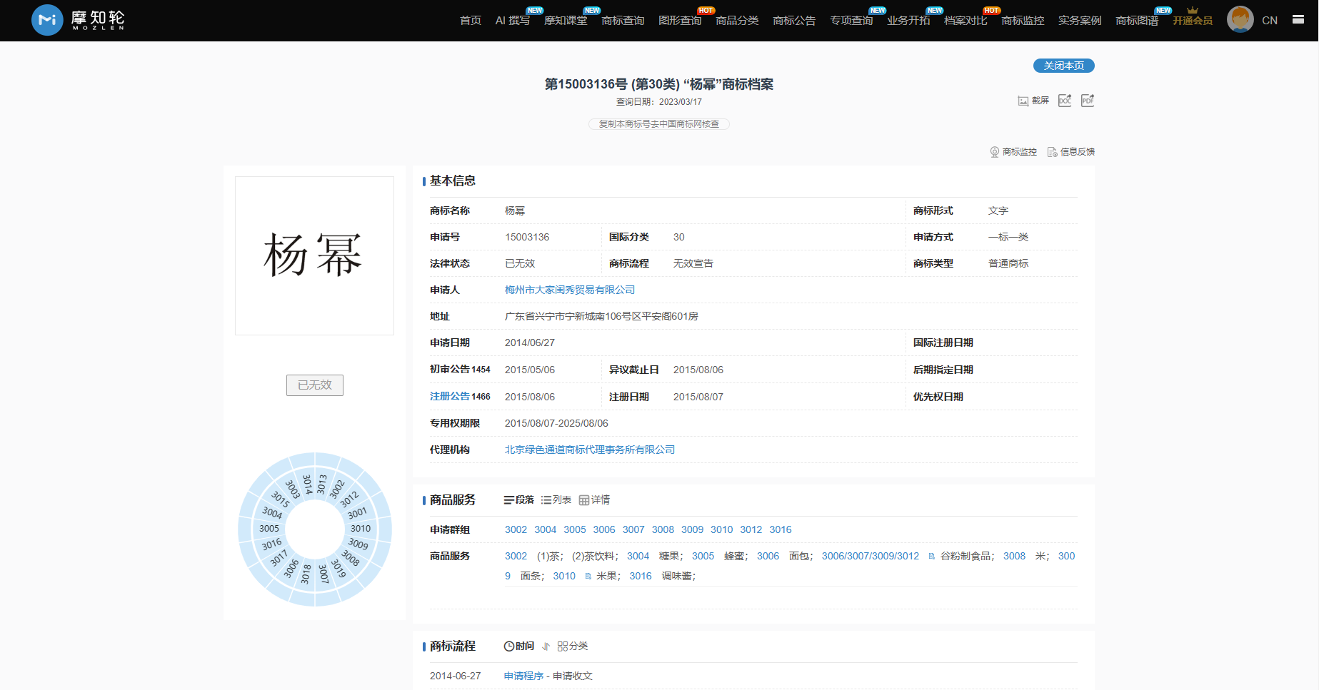 商標(biāo)局認(rèn)為:在案證據(jù)可以證明在爭議商標(biāo)注冊申請(qǐng)日之前,申請(qǐng)人楊冪已經(jīng)具有一定社會(huì)知名度,已經(jīng)為我國相關(guān)公眾所知曉。同時(shí)考慮到爭議商標(biāo)“楊冪”并非固定漢語搭配詞組,被申請(qǐng)人未經(jīng)申請(qǐng)人授權(quán),將與申請(qǐng)人中文姓名相同的文字申請(qǐng)注冊商標(biāo),該行為主觀上難謂巧合,客觀上被申請(qǐng)人具有不正當(dāng)利用申請(qǐng)人楊冪姓名的知名度和影響力而實(shí)現(xiàn)經(jīng)濟(jì)利益的目的。由此,爭議商標(biāo)的注冊和使用易使相關(guān)公眾認(rèn)為其所標(biāo)識(shí)的商品與申請(qǐng)人楊冪具有某種特定關(guān)聯(lián)或者由其授權(quán)生產(chǎn),從而損害申請(qǐng)人享有的在先姓名權(quán)。爭議商標(biāo)應(yīng)予無效宣告。