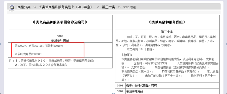 (第三方網(wǎng)站有關2002年版《類似商品和服務區(qū)分表》3002類似群商品展示)