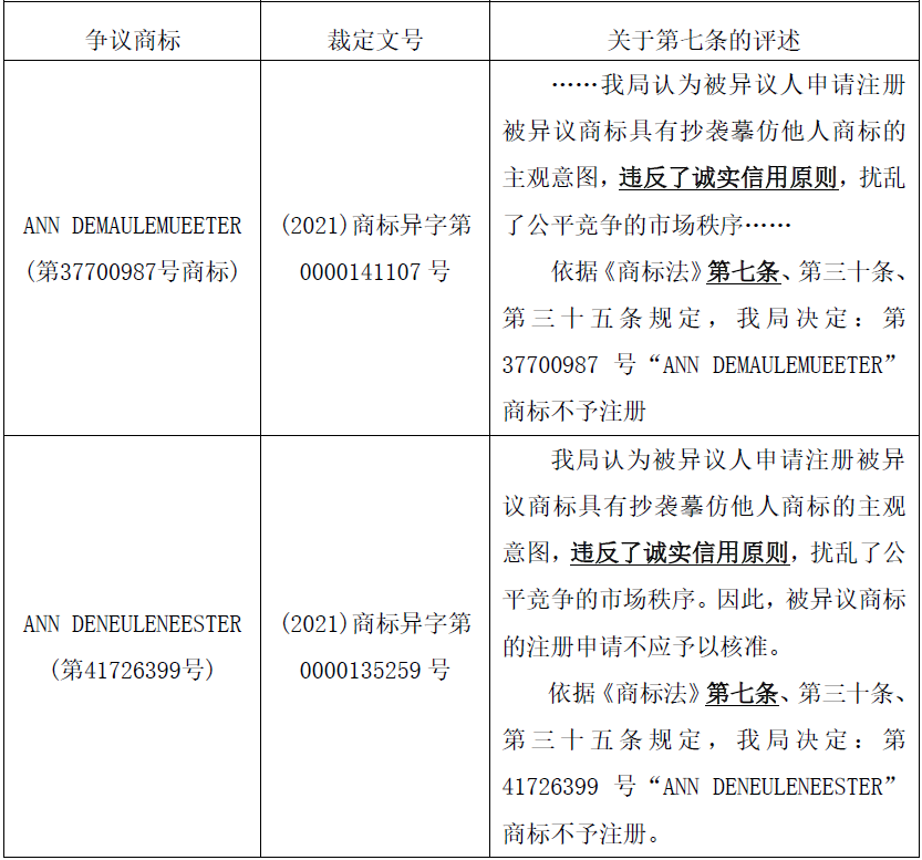 2.第37700987號“ANN DEMAULEMUEETER”商標(biāo)不予注冊的決定