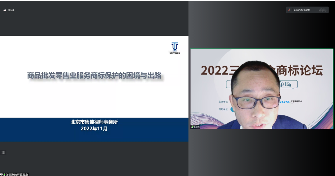 2022年11月26日下午,由北京商標(biāo)協(xié)會(huì)、北京知識(shí)產(chǎn)權(quán)研究會(huì)、北京大學(xué)法學(xué)院校友會(huì)三會(huì)首次聯(lián)合舉辦的“商標(biāo)法研究百家爭(zhēng)鳴——2022年商標(biāo)論壇”通過(guò)線上方式成功舉辦,多位業(yè)內(nèi)大咖基于中國(guó)商標(biāo)法的法律實(shí)踐,進(jìn)行了一場(chǎng)學(xué)術(shù)上的百家爭(zhēng)鳴。集佳合伙人張亞洲律師應(yīng)邀參加論壇并作主題演講。