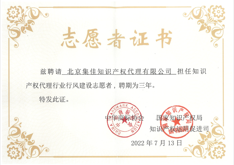 行風(fēng)建設(shè)年活動(dòng)由國(guó)家知識(shí)產(chǎn)權(quán)局知識(shí)產(chǎn)權(quán)運(yùn)用促進(jìn)司指導(dǎo),中華全國(guó)專利代理師協(xié)會(huì)和中華商標(biāo)協(xié)會(huì)聯(lián)合舉辦,是深入貫徹落實(shí)知識(shí)產(chǎn)權(quán)強(qiáng)國(guó)建設(shè)綱要和“十四五”知識(shí)產(chǎn)權(quán)保護(hù)和運(yùn)用規(guī)劃的部署要求,著力推進(jìn)知識(shí)產(chǎn)權(quán)代理服務(wù)業(yè)高質(zhì)量發(fā)展的一項(xiàng)重要舉措。在本次活動(dòng)中,集佳憑借優(yōu)質(zhì)、專業(yè)的知識(shí)產(chǎn)權(quán)代理服務(wù),獲聘擔(dān)任知識(shí)產(chǎn)權(quán)代理行業(yè)行風(fēng)建設(shè)志愿者。作為行風(fēng)建設(shè)志愿者,集佳積極發(fā)揮表率作用,嚴(yán)格要求自己,在知識(shí)產(chǎn)權(quán)代理工作中堅(jiān)守職業(yè)道德,恪守工作職責(zé),持續(xù)引導(dǎo)行業(yè)健康發(fā)展。