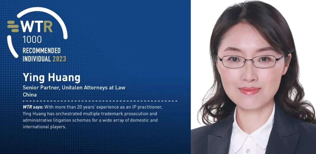 WTR評價:“黃鶯律師擁有超過20年知識產權從業(yè)經驗,曾為眾多國內企業(yè)和來自歐洲、韓國、南非和美國的國際企業(yè)策劃商標申請和行政訴訟方案。”