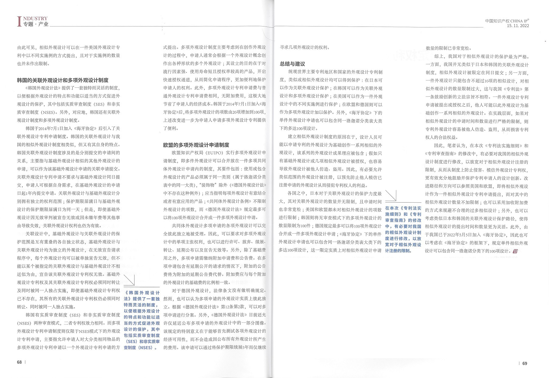 集佳文章《關(guān)于相似外觀設(shè)計制度的比較研究及修法建議》在《中國知識產(chǎn)權(quán)》發(fā)表