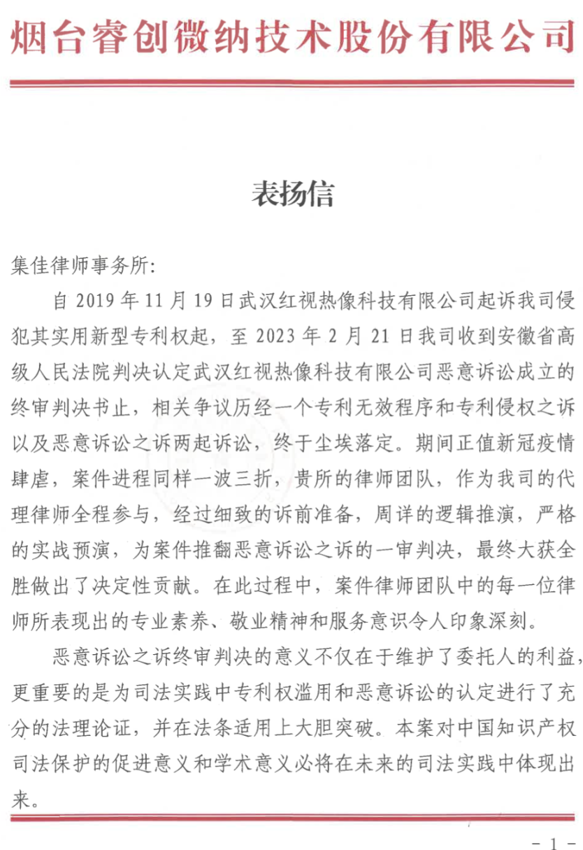 Finally, the Anhui High People's Court supported our arguments and entered a judgment on February 10, 2023 ruling that Wuhan Hongshi's abuse of the right to sue constituted malicious litigation and ordered Wuhan Hongshi to compensate Raytron Group for the corresponding reasonable expenses.