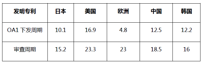 2022年日本局發(fā)明OA1平均下發(fā)周期及平均審查周期: