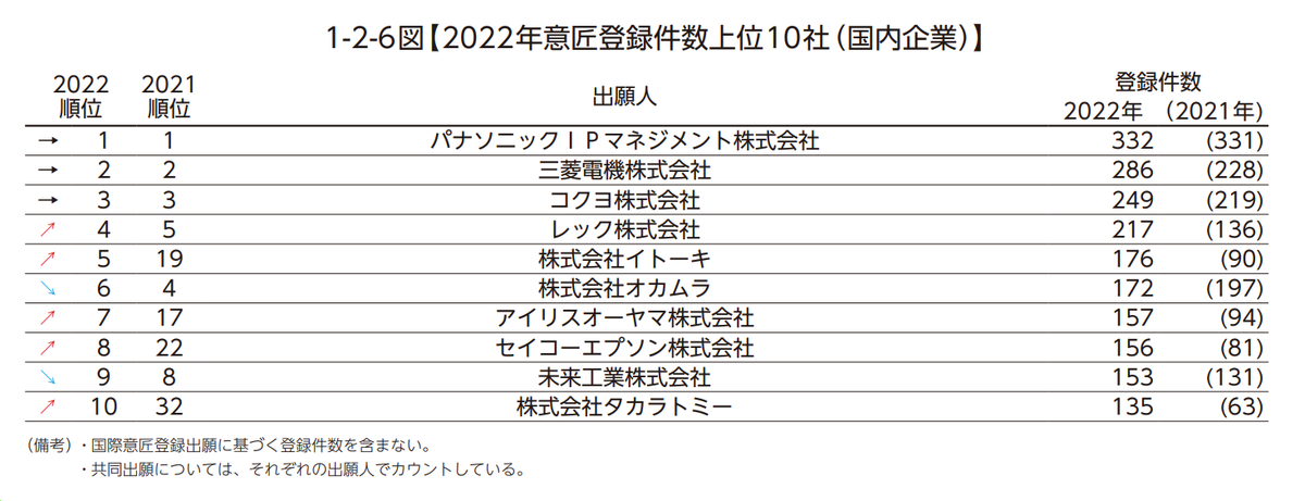 前10大日本國內(nèi)企業(yè)外觀設計注冊量: