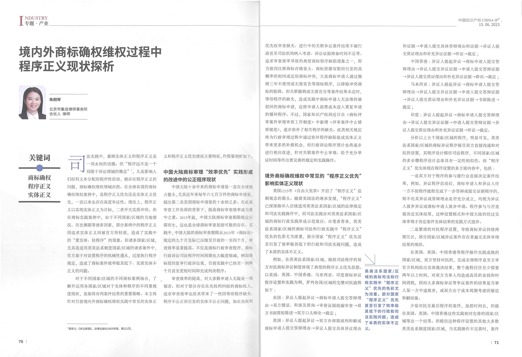 集佳文章《境內(nèi)外商標(biāo)確權(quán)維權(quán)過(guò)程中程序正義現(xiàn)狀探析》在《中國(guó)知識(shí)產(chǎn)權(quán)》發(fā)表