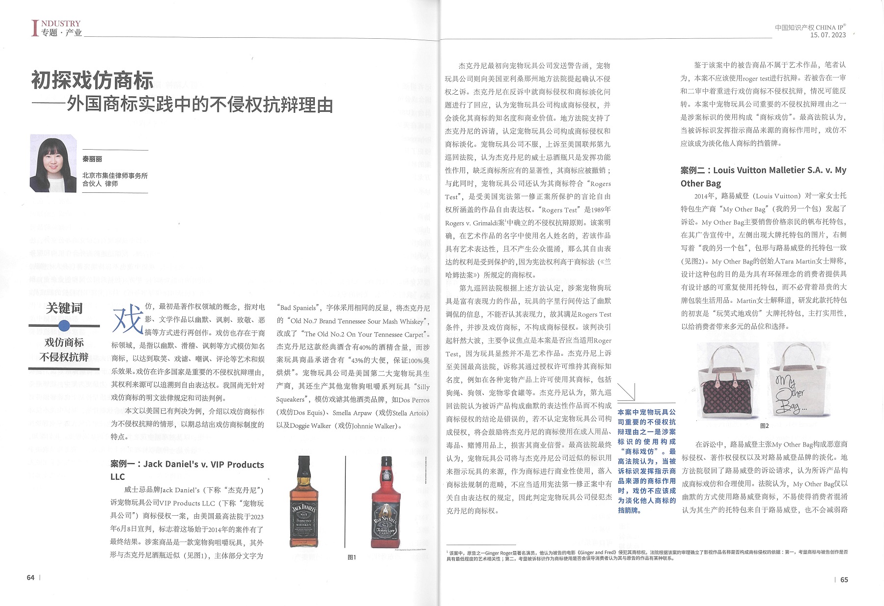 集佳文章《初探戲仿商標(biāo)——外國(guó)商標(biāo)實(shí)踐中的不侵權(quán)抗辯理由》在《中國(guó)知識(shí)產(chǎn)權(quán)》發(fā)表