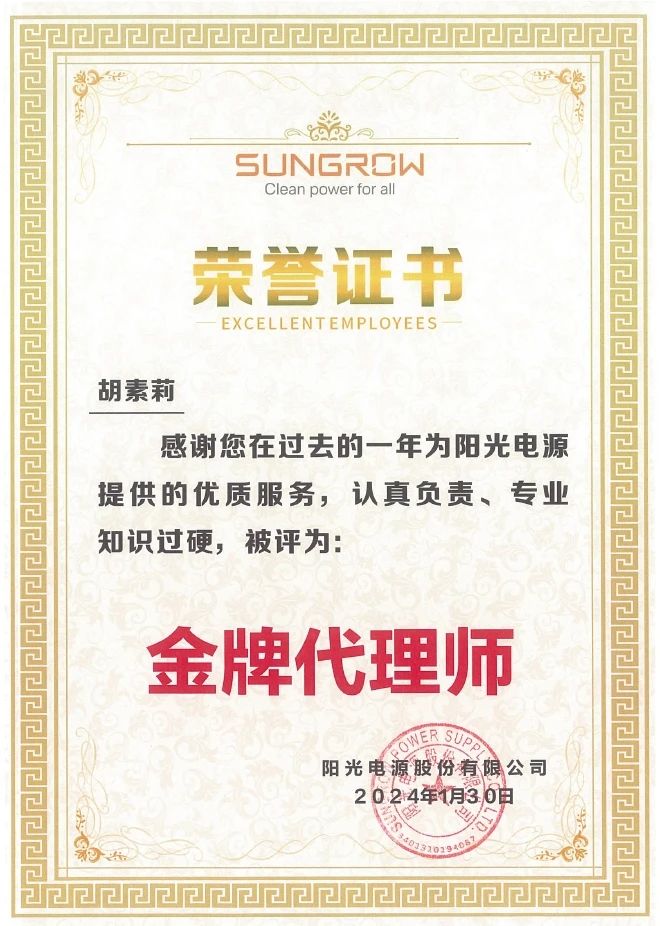 多年來,集佳與陽光電源保持著良好的合作,集佳為陽光電源撰寫的發(fā)明專利連續(xù)多年在中國專利獎評比中獲得中國專利銀獎和中國專利優(yōu)秀獎等榮譽。陽光電源對集佳及其優(yōu)秀團隊提供的高質高效專業(yè)服務表示贊許與感謝,并授予集佳專利代理師安淼、高楊、郝琳佳、胡素莉、劉松、田磊、朱麗蘭等“金牌代理師”稱號,對他們認真負責、高度敬業(yè)的專業(yè)態(tài)度點贊!