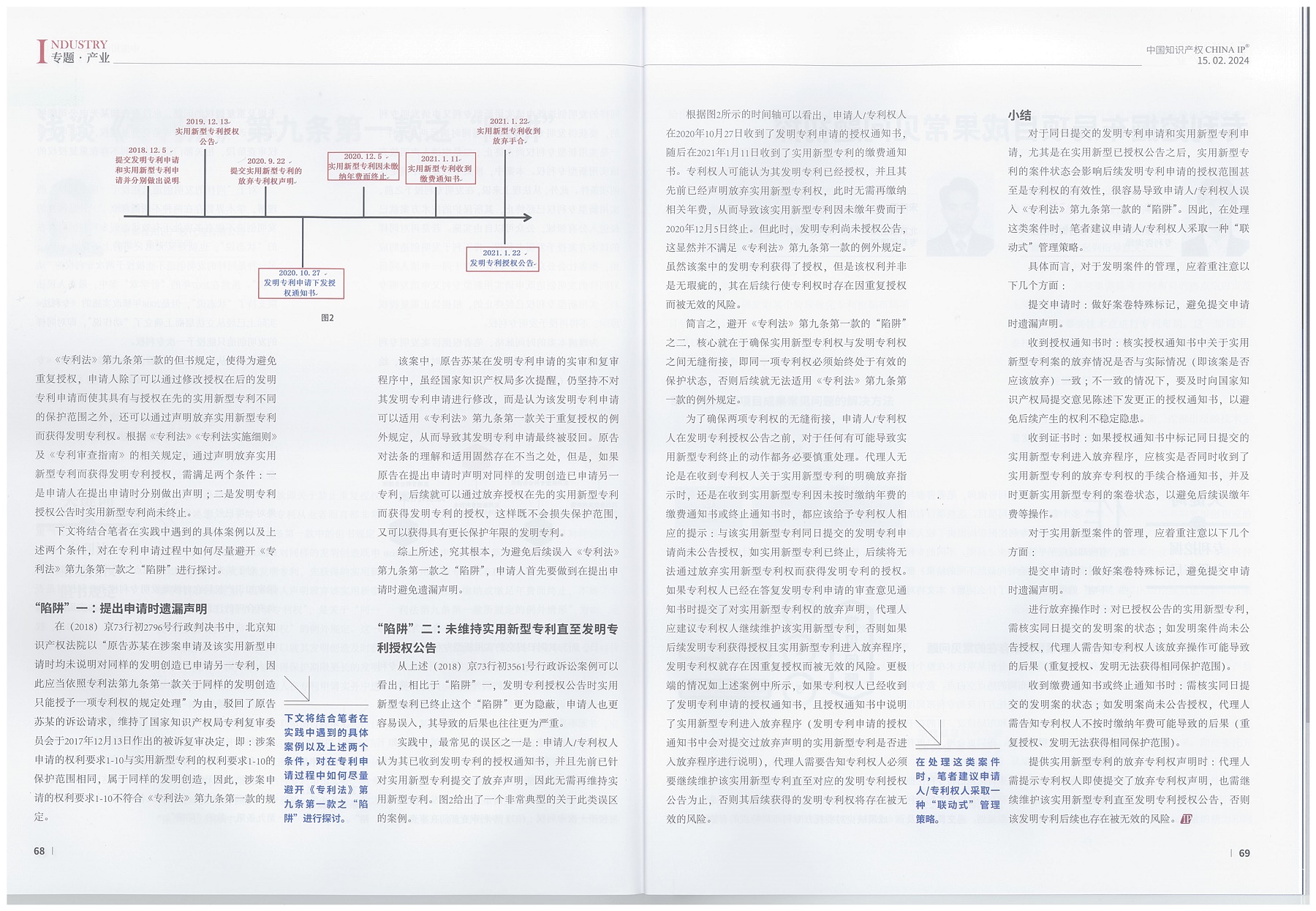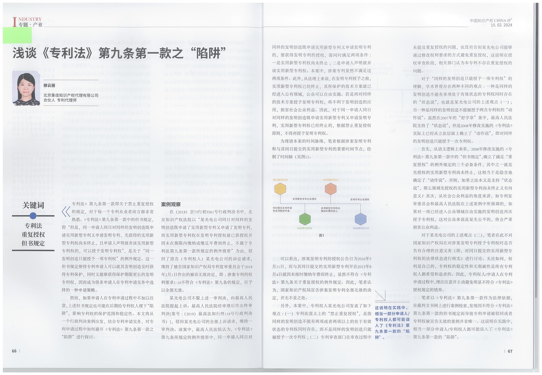 集佳文章《淺談<專利法>第九條第一款之“陷阱”》在《中國知識產(chǎn)權(quán)》發(fā)表