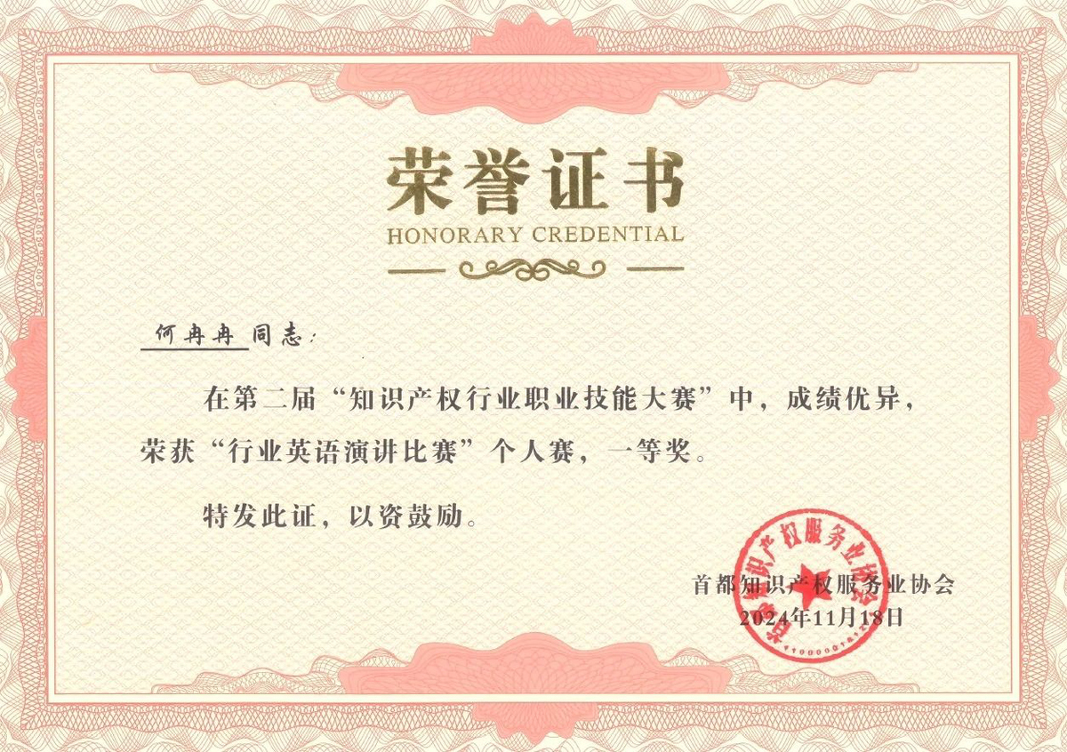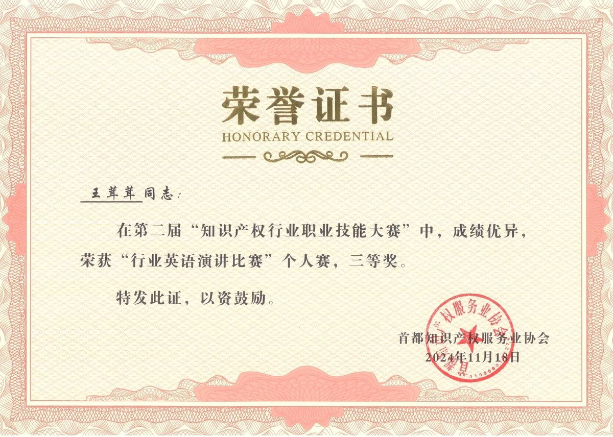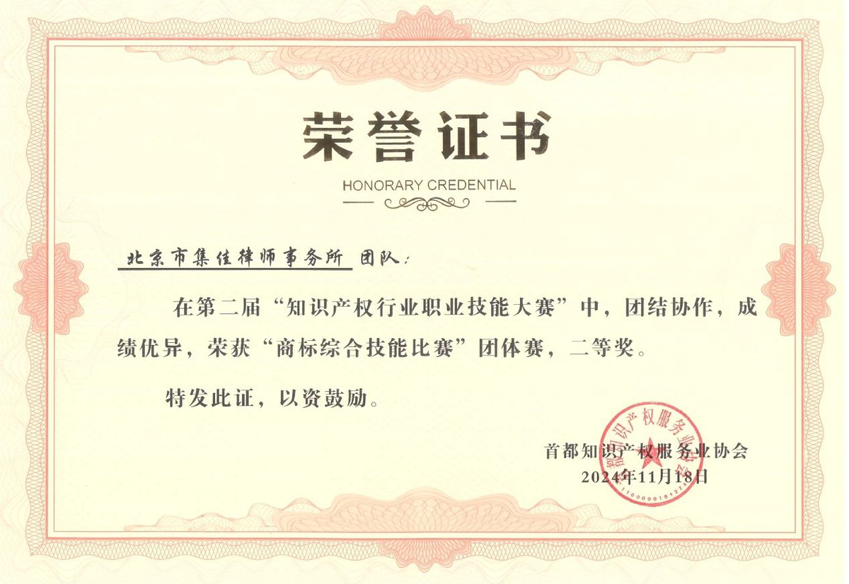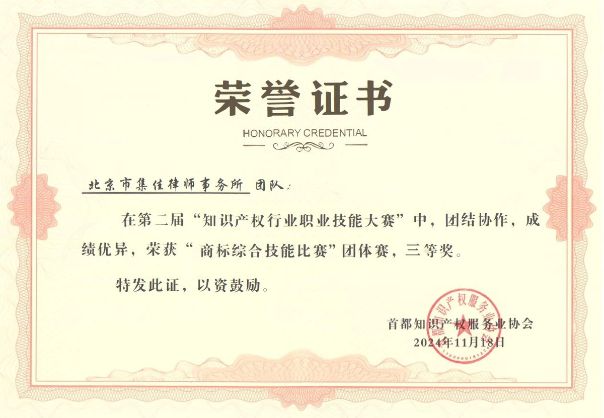 本屆大賽以“激揚創(chuàng)新夢想 鑄就精彩人生”為主題,秉持公平公正的原則,以展現知識產權人的職業(yè)風采、提升知識產權從業(yè)人員專業(yè)水平、引領知識產權行業(yè)向高質量發(fā)展為目標,為行業(yè)青年人才提供了交流、展示、歷練的平臺?!靶袠I(yè)英語演講比賽”檢驗從業(yè)人員專業(yè)英文口語表達能力;“商標綜合技能比賽”檢驗從業(yè)人員商標檢索、制定商標確權策略,撰寫確權方案的能力。比賽中,集佳參賽選手通過精彩的演講與答辯,展現了出色的專業(yè)能力與良好的團隊協作精神,受到評委們的一致好評。