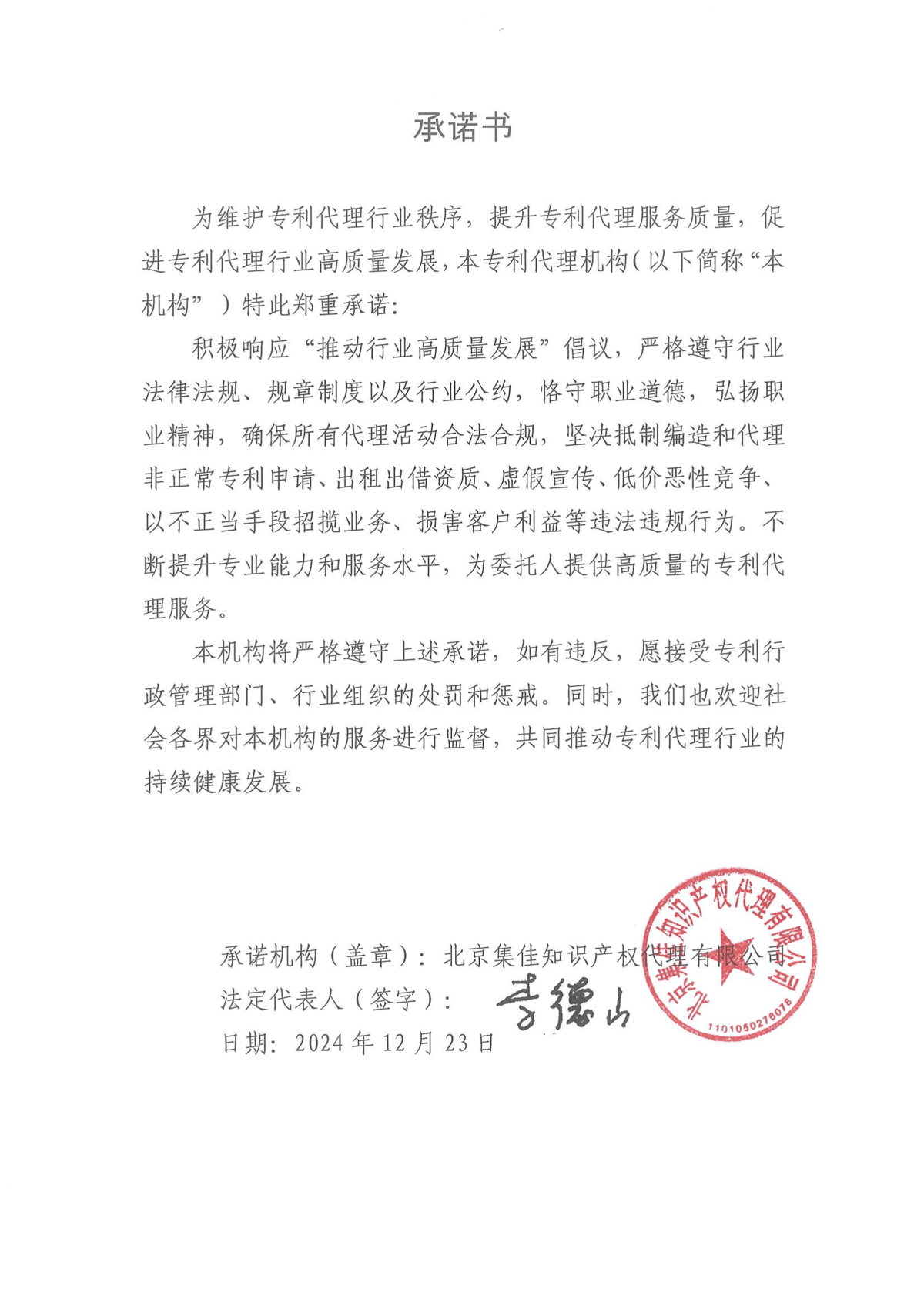 北京集佳知識(shí)產(chǎn)權(quán)代理有限公司積極響應(yīng)倡議,組織員工認(rèn)真學(xué)習(xí),全面如實(shí)開展自查工作,加強(qiáng)內(nèi)部管理,進(jìn)一步規(guī)范代理行為,提升代理服務(wù)質(zhì)量,并作出鄭重承諾: