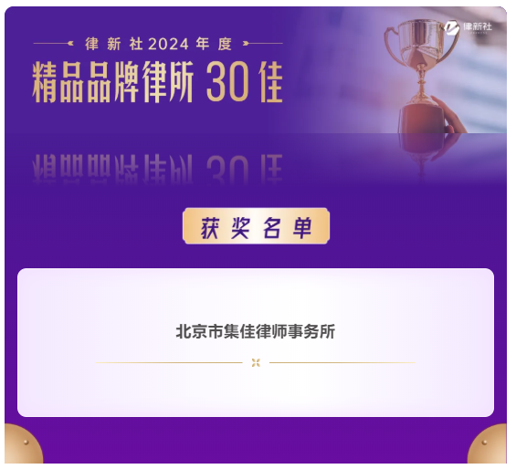 集佳律所專注于知識產(chǎn)權(quán)法律事務(wù),集佳團(tuán)隊通過為客戶提供周全、嚴(yán)謹(jǐn)?shù)姆煞?wù),在案件中最大程度地維護(hù)客戶的合法權(quán)益,贏得了廣大客戶的贊譽(yù)和信賴。感謝大家對集佳的認(rèn)可和律新社的專業(yè)評選,未來,集佳將始終如一地踐行“站在客戶的角度考慮每一個問題,全身心地關(guān)注客戶的每一個細(xì)節(jié)”的服務(wù)理念,為客戶提供專業(yè)、精致、高質(zhì)量的法律服務(wù)。