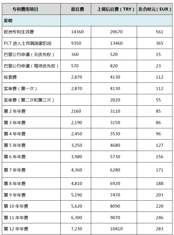 自2025年1月1日起,土耳其專(zhuān)利局適用新的官費(fèi)標(biāo)準(zhǔn)。