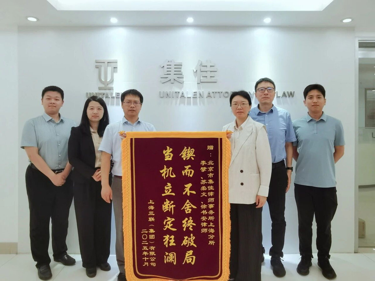 近日,集佳上海分所代理的上海三聯(lián)(集團(tuán))有限公司(以下簡(jiǎn)稱“上海三聯(lián)集團(tuán)”)與上海某公司、大豐某公司等侵害商標(biāo)權(quán)及不正當(dāng)競(jìng)爭(zhēng)糾紛案的執(zhí)行取得重大進(jìn)展,上海三聯(lián)集團(tuán)代表專程蒞臨集佳上海分所,送來表揚(yáng)錦旗。